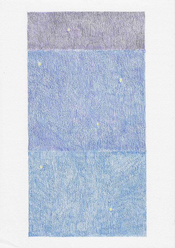 This drawing series, made with coloured pencils on paper, is inspired by the ongoing project “Between Stars and Earthquakes”. It explores the Earth’s profound movements, focusing on the tectonic forces that shape the landscape and highlight the interconnectedness of human and nonhuman life and its fragility and instability. The drawings were created during my time at Cemeti Institute for Art and Society in Yogyakarta, Indonesia, where I engaged with both the physical landscape and the region’s intangible cultural heritage, from Mount Merapi to the Southern Sea. My research focused on geomythology, including the myths, rituals, cosmologies, and sounds associated with the volcano. Through conversations and exchanges with local communities around Cemeti and Mount Merapi, I explored how seismic and volcanic activity has shaped the region across generations. Java’s mythologies and belief systems often explain natural phenomena through the presence of gods, spirits, and other unseen forces, reflecting a close relationship between people and the environment. In this cosmology the volcano’s peak is seen as a meeting point between Earth and sky. It forms a vertical axis that links the planet’s core to the cosmos. These drawing sections expand our usual sense of space, offering a perspective in which the deep movements of the Earth resonate with those of the universe.